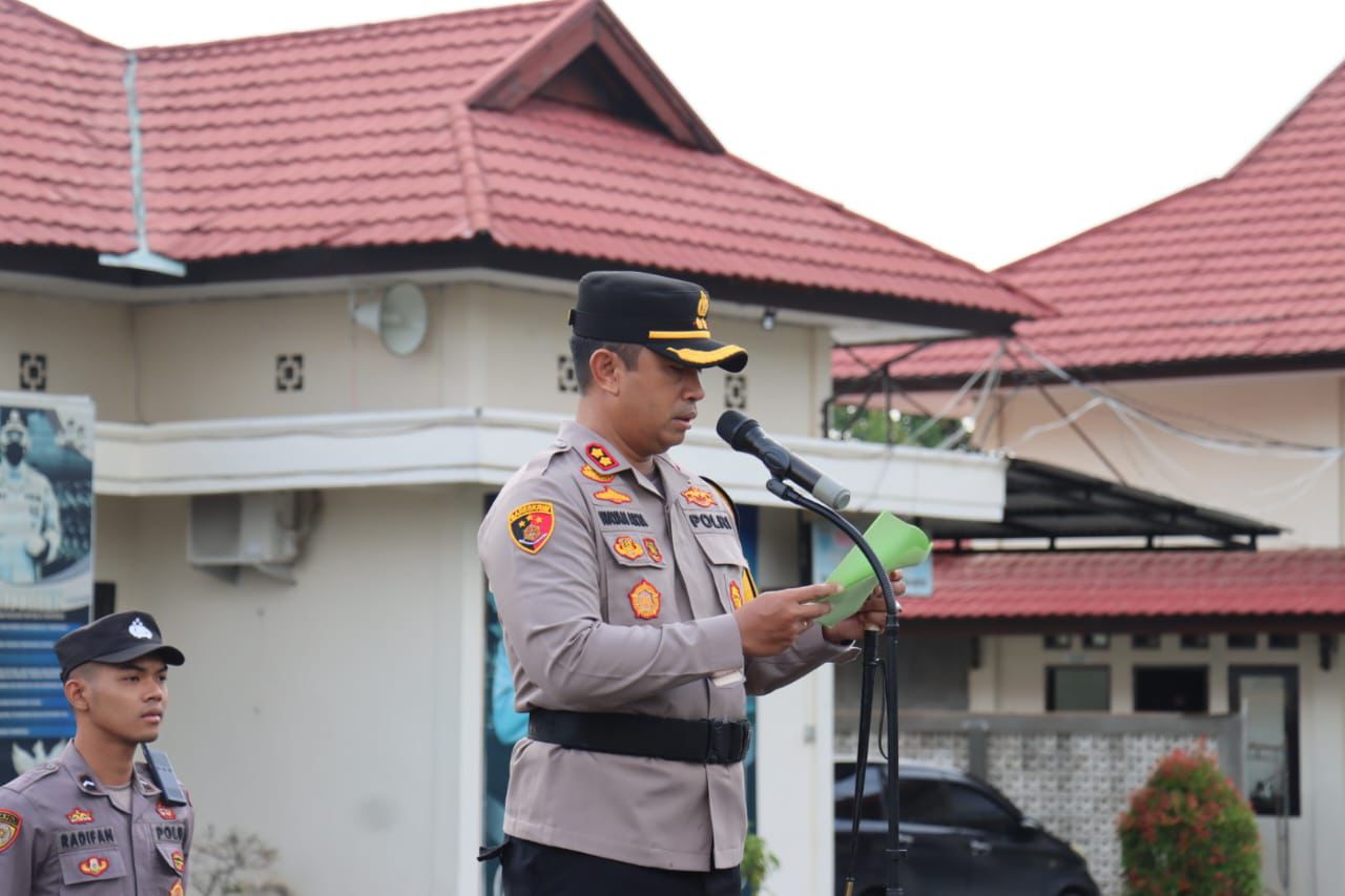 Upacara berlangsung dalam suasana khidmat dengan rangkaian acara yang meliputi laporan komandan upacara, penghormatan pasukan, serta amanat dari Kapolres Tebo yang disampaikan langsung oleh AKBP Dr. I Wayan Arta Ariawan. Dalam amanatnya, Kapolres menyampaikan sejumlah arahan kepada para siswa yang akan melaksanakan latihan kerja di Polres Tebo.
