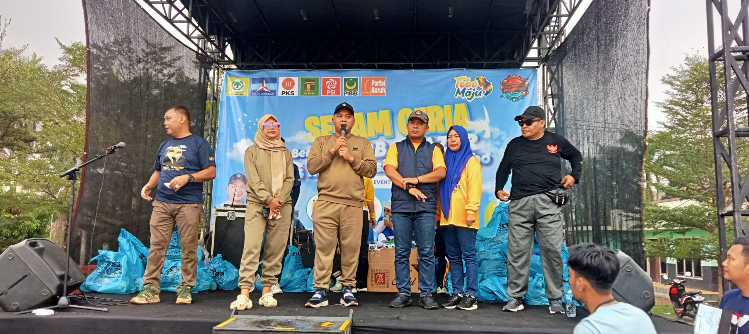 Dalam sambutanya, Calon Bupati Tebo Agus Rubiyanto, didampingi Calon Wakil Bupati Tebo Nazar Efendi, mengucapkan terimakasih kepada masyarakat telah hadir dan meramaikan acara senam sehat.
