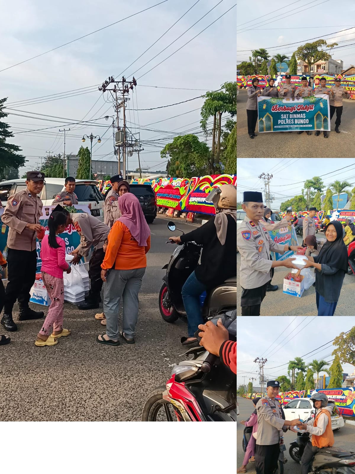 Kegiatan sosial tersebut dipimpin langsung oleh Kasat Binmas Polres Bungo, Iptu Ahmad Daldiri, dan diikuti oleh seluruh personel Sat Binmas Polres Bungo. Aksi berbagi ini dilakukan sebagai bentuk kepedulian Polri kepada masyarakat yang tengah menjalankan ibadah puasa, khususnya para pengguna jalan yang belum sempat menyiapkan hidangan berbuka.
