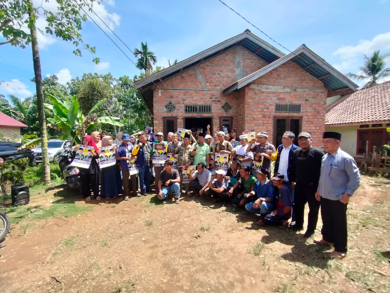 Meski tanpa didampingi Calon Bupati Agus Rubianto, kedatangan Calon Wakil Bupati Nazar Efendi tetap disambut meriah oleh masyarakat Desa Sungai Keruh.