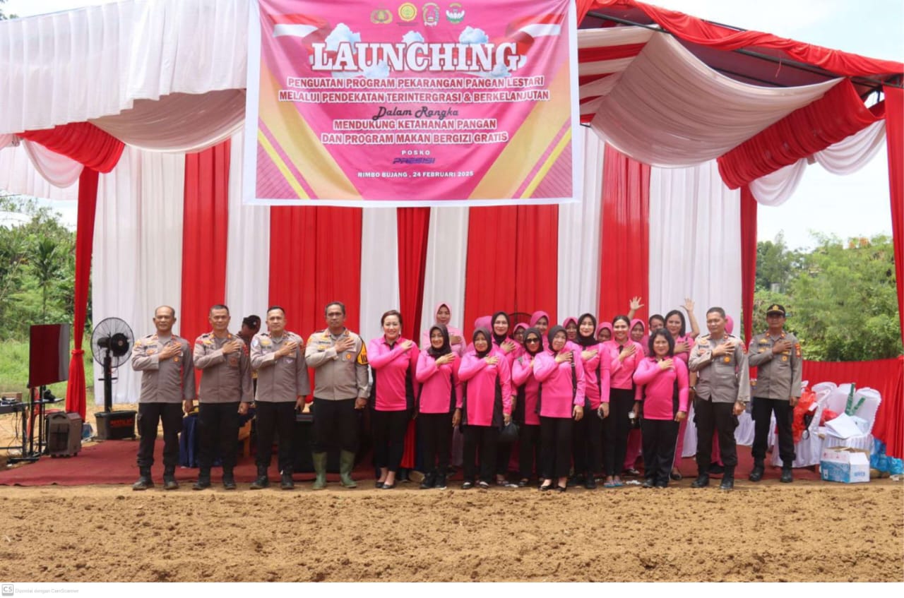Faktualjambi.com,Tebo – Polsek Rimbo Bujang menggelar kegiatan Launching Penguatan Program Pekarangan Pangan Lestari Melalui Pendekatan, Terintegrasi dan Berkelanjutan dalam rangka mendukung ketahanan pangan dan program makan bergizi gratis. Acara ini berlangsung pada Senin (24/02/2025) pukul 09.00 WIB di belakang Mako Polsek Rimbo Bujang.